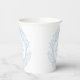 Elegant vintage Coquette themed baby boy shower paper cups featuring cute blue toile frame decorated with blue bow. Perfect for sweet French style baby boy celebrations.