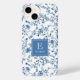 Elegant Blue French Toile Pattern Monogram Name Case-Mate iPhone Hülle
