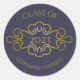 Elegant Blue | Gold Blüh Class of 2023 Name Runder Aufkleber