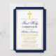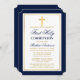 Elegant Blue Gold Cross First Holy Communion Einladung
