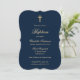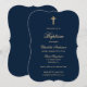 Elegant Blue Gold Cross Script Girl Taufe Einladung