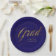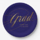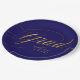 Dekorieren Sie Ihren Abschluss mit diesen eleganten, minimalistischen Blau- und Goldschrift-Tellern für Grade Kalligraphie.