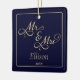 Elegant Blue Gold Mr. und Mrs. 1 Weihnachten Keramikornament