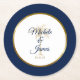 Elegant Blue Gold Palm Tree Tropische Hochzeit Runder Pappuntersetzer