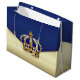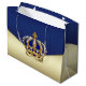 Prince Baby Dusche Geschenktasche mit wunderschönem königsblauen und goldgelben Krone auf einem eleganten königsblauen und goldenen Hintergrund. Dieser Prinz- oder Königsgeschenksack ist durch das Hinzufügen von Text leicht auf Ihre Veranstaltung zugeschnitten. Sie können die Krone auch nach Bedarf verschieben und verkleinern.