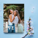 Minimalist Elegant Photo Trendy Fake Lace Light Blue Heart Love Quote Wedding Save the Date Card with Envelope.