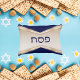 Elegant Blue Hebrew Pessach Pillow Dekokissen