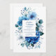 Invite your guests with breathtaking elegance using this sophisticated floral wedding invitation. The design showcases a stunning, painterly watercolor bouquet arranged around a central frame, set against a crisp white background. A magnificent royal blue hydrangea cluster provides a lush focal point, beautifully complemented by delicate sky-blue and white anemone-like flowers. This exquisite arrangement is artfully interwoven with dusty blue-green eucalyptus leaves and sprays of tiny blue berries or buds, creating a fresh, romantic, and sophisticated feel. A clean, minimalist white rectangular frame provides a perfect, modern space for your event details. Perfect for sophisticated weddings (especially with a 'something blue' theme), this design is also ideal for elegant bridal showers, milestone birthday celebrations, anniversary parties, baby showers, or upscale garden events. This versatile design can also be adapted for sophisticated corporate galas, charity fundraisers, or elegant announcements requiring a touch of refined floral beauty.