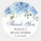 Elegant Blue Hydrangea Eucalyptus Brautparty Runder Aufkleber