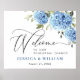 Elegant Blue Hydrangea Eukalyptus PROBE DINNER Sign.