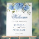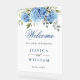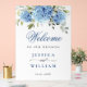 Elegant Blue Hydrangea Eukalyptus WEDDING Begrüßungsakryllisches Zeichen.