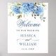 Elegant Blue Hydrangea Eucalyptus Wedding Willkomm Poster