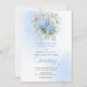 Set the tone for a stylish and unforgettable celebration with this watercolor blue and gold wedding invitation, designed around today’s most trendy wedding color palette. Featuring soft pastel, powder, light, and pale blue hydrangeas, paired with fresh eucalyptus greenery and elegant gold floral accents, this design captures modern romance with timeless appeal.