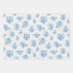 Elegant Blue Hydrangea Pattern Gray Stripe Geschenkpapier Set