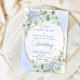 Elegant Blue Hydrangea Wheat Gold Oval Wedding Einladung