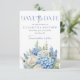 Elegant Blue Hydrangea White Florals Foto Hochzeit Save The Date