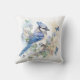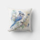 Elegantes, blaues Jay und Schmetterlinge bemalt Dekorationskissen. Perfekte Wohngestaltung für den Vogelliebhaber.