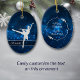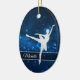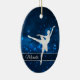 Dieses elegante Ornament besticht durch eine silberne Silhouette-Ballerina vor einem hübschen blauen Hintergrund mit winzigen Sternlichtern. Ihr Name ist in Silber auf einem halbdurchsichtigen Banner, der in Glitzer mit weißen Imitaten gerahmt ist. Die Rückseite des Ornaments hat den gleichen blauen Hintergrund mit drei benutzerdefinierten Textfeldern in der Mitte eines extravaganten Imitats Diamant gerahmt Banner. Ideal für die Tochter, Enkelin oder Nichte, die Balletttänzerin ist.