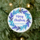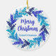 Elegant Blue Merry Christmas Wreath Keramik Ornament