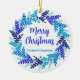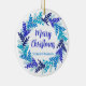Elegant Blue Merry Christmas Wreath Keramik Ornament