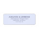This elegant label features a clean, minimalist design with ample negative space and a soothing light blue background. The typography is sophisticated, using a medium-weight serif font that adds a touch of formality to the layout. Perfect for personalizing wedding stationery or formal invitations, this label offers customizable sections for names, addresses, and ZIP codes, ensuring it can be tailored to any special occasion. Its simple yet refined aesthetic conveys sophistication and clarity, making it ideal for those seeking a timeless and polished look.