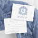 Elegant Blue Monogram Wappen Wedding RSVP Karte