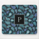 Elegantes Blue Paisley Muster Monogram Mouse Pad.