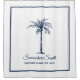 Fügen Sie Ihre eigene Touch zu diesem schlicht eleganten Design mit Ihrem Familiennamen oder Phrasen und festem Datum in blauen Text und blauen Palmen gerahmt in einem blauen Rahmen.