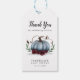 Elegante und rustikale Babydusche-Liebesmarke mit Aquarellbild eines blauen Kürbis mit Imitaten silbernen Glitzer und bordeauxfarbenen Blume. Passen Sie dieses Produkt an, indem Sie unten den Namen und das Datum der Veranstaltung der künftigen Mutter hinzufügen. Die Nachricht an der Spitze lautet: "Danke, dass du mit uns gefeiert hast." Perfektes Herbstthema für einen kleinen Jungen.