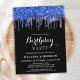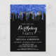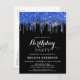 Elegant Blue Silver Black Glitzer Tropfen Geburtst Einladungspostkarte