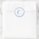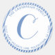 Elegant Blue Silver Foil Stripe Monogram Address Runder Aufkleber