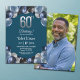 An elegant modern design featuring silver 60 number with neon blue edges and balloons with silver and blue glitter and a special photo of the birthday person on the back of the invitation. Customize the details for a unique and chic Birthday Celebration.
