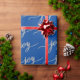 Elegant Blue Silver Joy Calligraphy Weihnachten Geschenkpapier