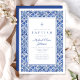 Elegant Blue Tiles Religious Cross Boy Taufe Einladung.