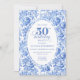 Elegant Blue Toile Rose 50th Birthday Invitation Einladung