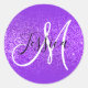 Elegant Blue Violet Ombre Glitzer Monogram Runder Aufkleber