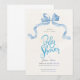 This elegant baby shower invitation features a soft blue watercolor bow paired with clean, timeless typography for a refined and welcoming look. Designed to suit baby boy or neutral baby shower themes, this invitation balances classic charm with modern simplicity.