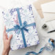 Elegant Blue White Calligraphy Fireworks Geburtsta Geschenkpapier