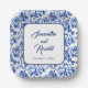 Elegant Blue White Floral Toile Hochzeit Pappteller