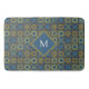 chic blue and white brown Moroccan pattern custom monogram bath mat .