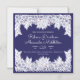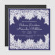 Eleganter blau-weiß Hochzeitsmagnet für jede Jahreszeit. Ihre Details werden durch die oberen und unteren Ränder der Linie gezeichnet Dianthus, Lilie des Tals, Blätter und Damenwanzen betont.