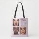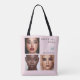 This elegant business tote bag features chic typography that says Makeup By *Your Name*, and spots to add 3 of your own photos, as well as your business logo and your social media handle. The pastel blush pink and black color scheme gives the card a feminine vibe. ••• For more makeup artist business supplies, visit my store Zazzle.com/The_Business_Babe ••• For custom orders, message me on Zazzle
