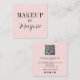 Elegant Blush Pink Black Script QR Code Makeup Quadratische Visitenkarte