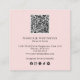 Blush pink business card with black typography and elegant script. Update qr code with your website and edit social media icons for your business. Message the designer for more customization options.