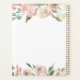 Ein elegantes Blumenstrauß aus rosa Pfannkuchen bildet den oberen Rand dieses schönen Planers aus dem Jahr 2023. Inmitten der pfirsichfarbenen Blume schmücken die Blätter der Salbei die Eleganz. Elegantes, rosafarbenes Aquarellpapier mit antiken goldenen Monogramm unten.