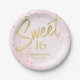 Elegant Blush Pink & Gold Confetti Sweet 16 Pappteller