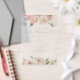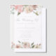 Ein elegantes Blumenstrauß aus rosa Pfannkuchen und Elfenbein-Rose umrahmt diese schöne Sommergarten-Hochzeitseinladung. Die Blätter der Salbei schmücken inmitten der cremefarbenen Blume aus Torfmotiven, die die wunderschöne moderne Typografie umgeben. Romantische botanische Einladungen.