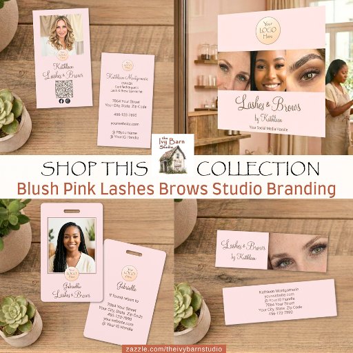 Elegant Blush Pink Black 3 Photo Lashes and Brows Business Card This Unique Custom Created Original Typography Design by the Ivy Barn Studio, gives the impression of the words being the "lashes and brows" themselves! Personalize below that, with type of salon, boutique, or spa or your tagline. There are 3 photos that your are free to use, or Add Your Photos to personalize further. Add your name, title, and contact info on the back. This color combination is Blush Pink with a Mocha Brown Script font that is both Professional and Chic! Gives quite the 1st impression! This design was also created in a Mocha Brown with Cream Script color option, so you might want to check that out too!