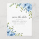 Moderne blaue Aquarellfarben Blume Hochzeit speichern das Datum Postkarten.