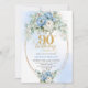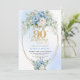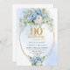 Elegant Boho Blue Floral 90th Birthday Invitation Einladung